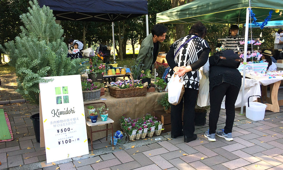 One day in autumnyuki72923272016年12月15日読了時間: 1分 11月13日、吉野公園で開催された"かごんマルシェ”で多肉植物のワークショップをしました。130店舗程の出店ですごい賑わい!.紅葉した木々に囲まれた気持ちの良い空間の中、久しぶりにエプロンを着けてたくさんの方と植物の話をして、とても新鮮で楽しい時間を過ごしました。.友人が遊びに来てくれたり、以前の職場のかわいいお客様と偶然の再会があったり、嬉しい秋の思い出です。